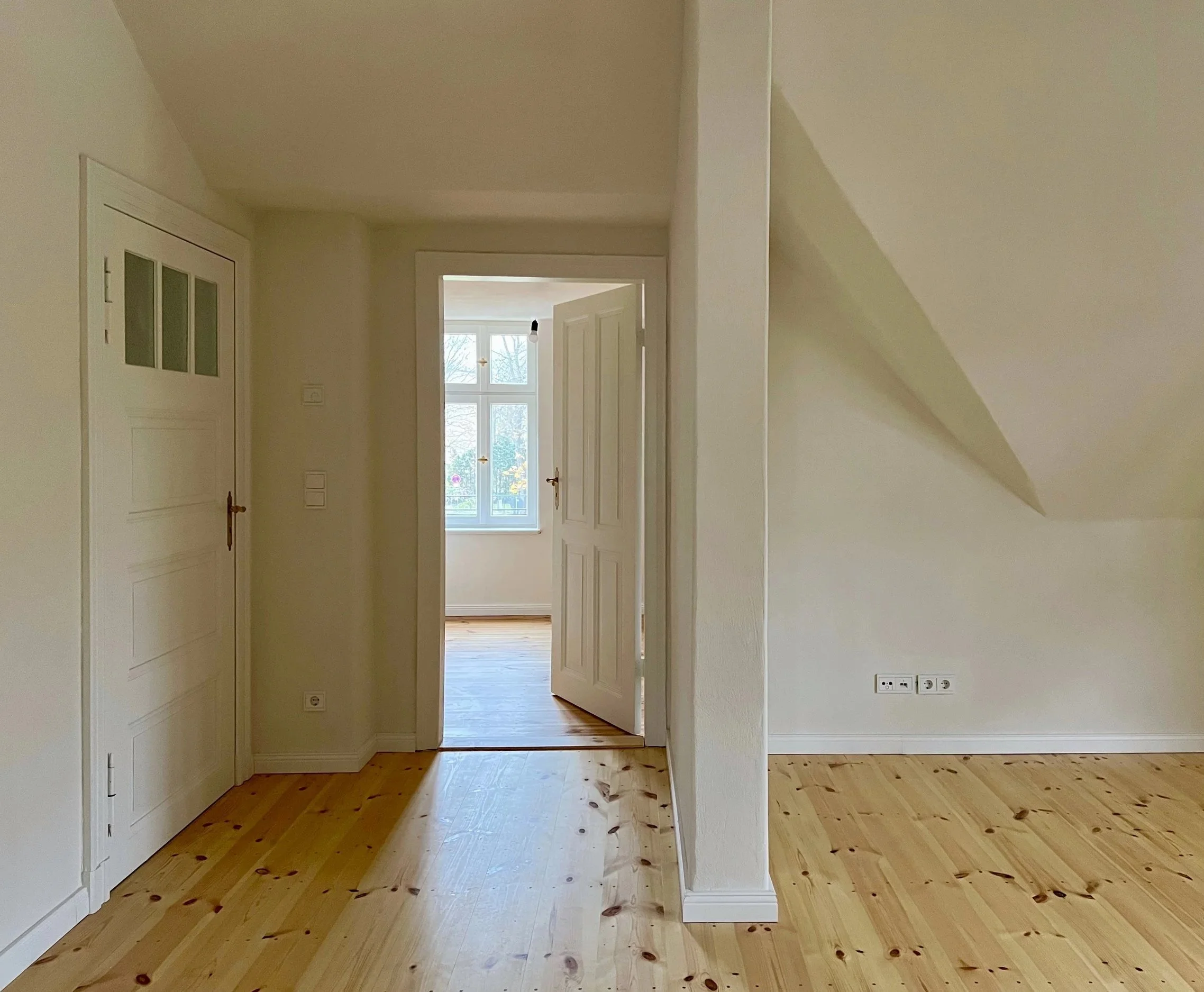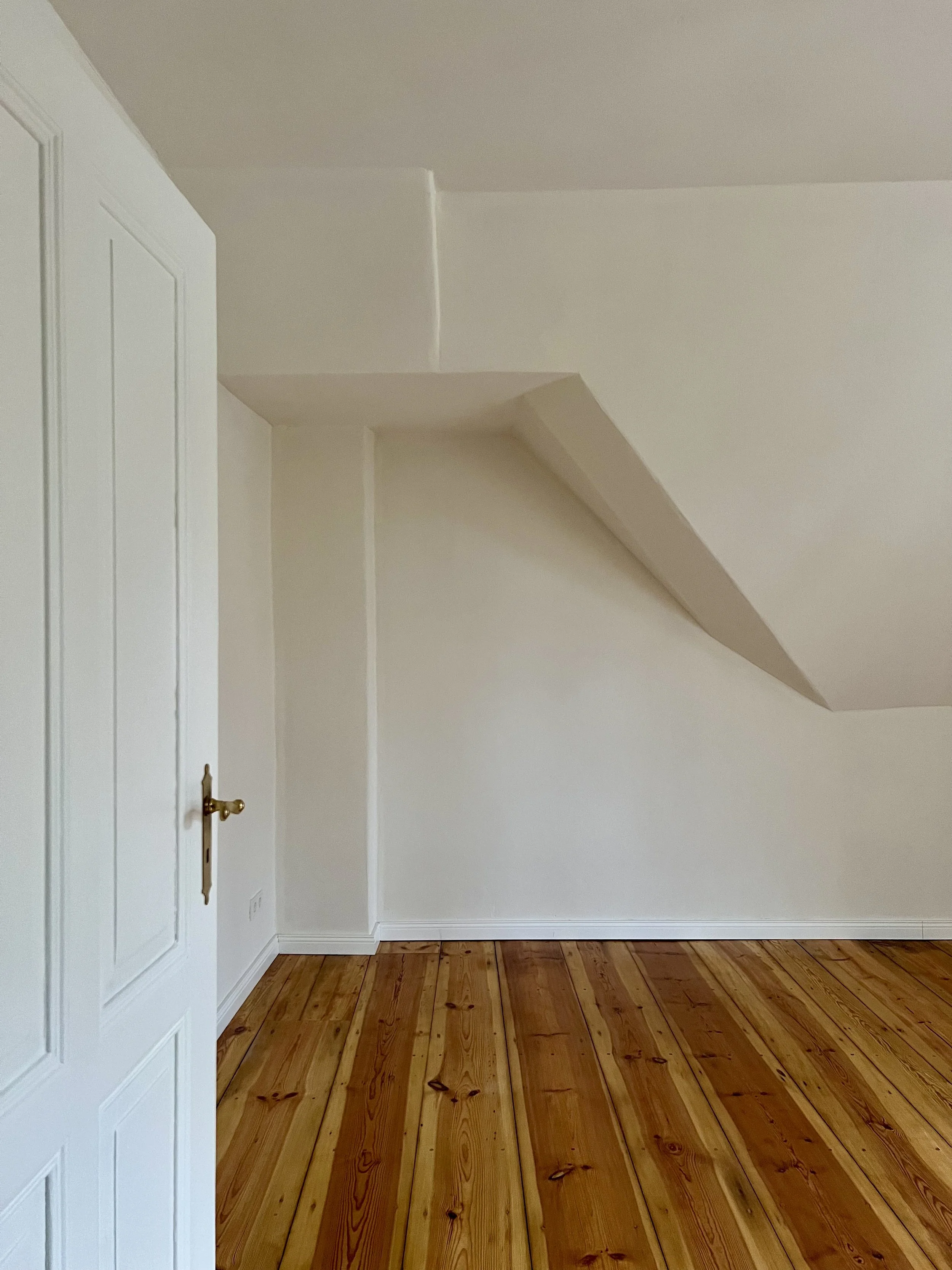 Gemeinschaftszimmer mit Lehmputzwänden und Dachschrägen